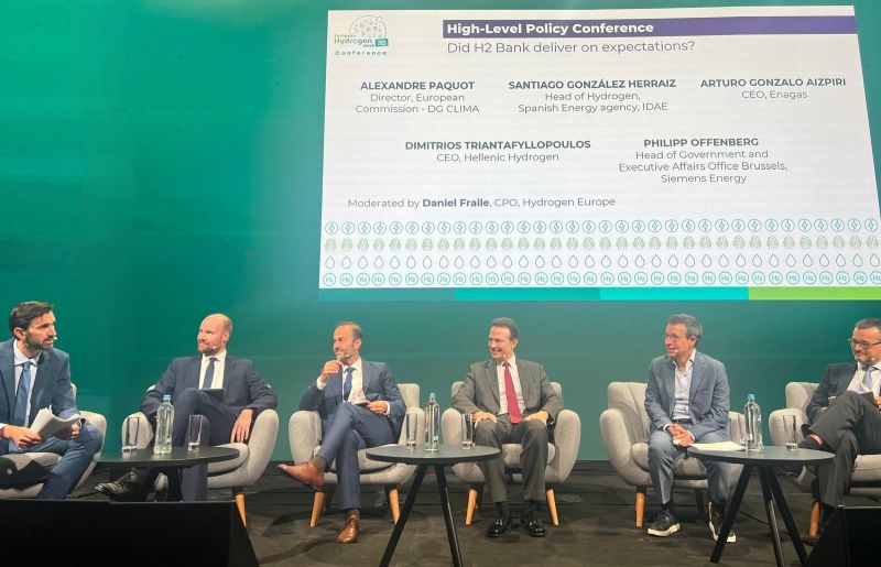 Ιδιαιτέρως σημαντικά συμπεράσματα προέκυψαν από τη συζήτηση της High-Level Policy Conference με θέμα: «Did H2 Bank deliver on expectations?», στην οποία συμμετείχε ο CEO της Hellenic Hydrogen, κ. Dimitrios Triantafyllopoulos, μαζί με άλλους διακεκριμένους ομιλητές: τον Alex Paquot (European Commission), τον Philipp Offenberg (Siemens Energy) και τον Santiago González Herraiz (IDAE. Instituto para la Diversificación y Ahorro de la Energía), με συντονιστή τον Daniel Fraile (Hydrogen Europe), στο πλαίσιο της European Hydrogen Week 2025